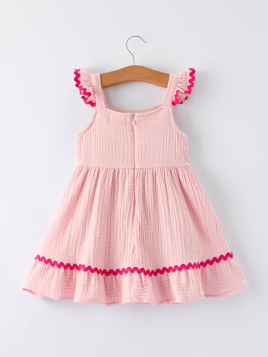 Summer Pink Girls Ruffle Trim Dress
