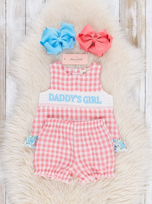 Pink Gingham Daddy's Girl Smocked Bloomers Outfit