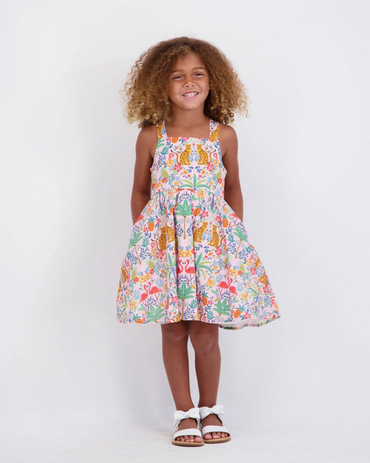 Girls Textured Cotton Poplin Dress | Pink Cheetah